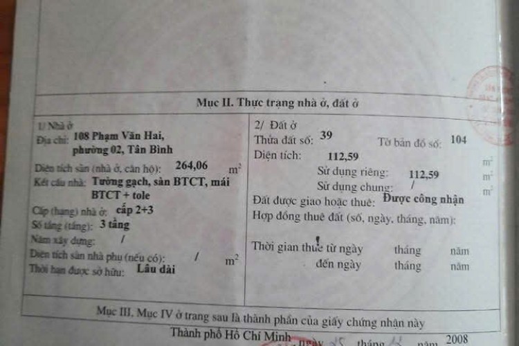 Khu vực : Đường Phạm Văn Hai ,2 , Tân Bình, Hồ Chí Minh