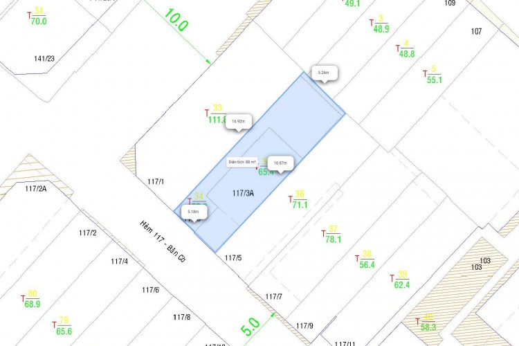 DTCN: 87.3m², không lộ giới