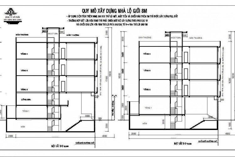 Diện tích: 5.2m x 16.8m (vuông vức)