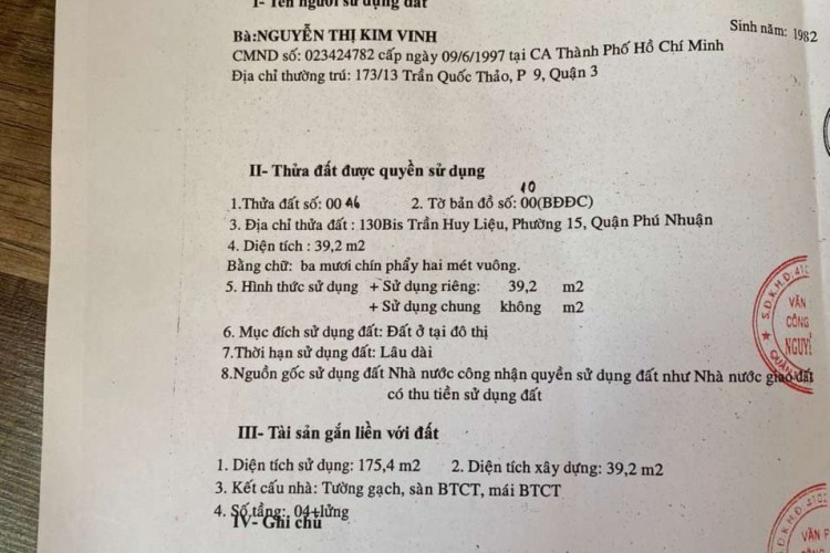 Bán nhà mặt tiền 130Bis Trần Huy Liệu, Phường 15, Quận Phú Nhuận.