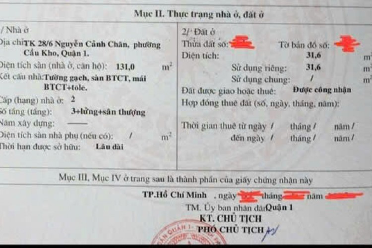 Vị trí: Hẻm 6m sạch, xe hơi vào dễ; cách mặt tiền Nguyễn Cảnh Chân 15m; trung tâm Bến Thành – tiện ở, cho thuê hoặc làm CHDV.