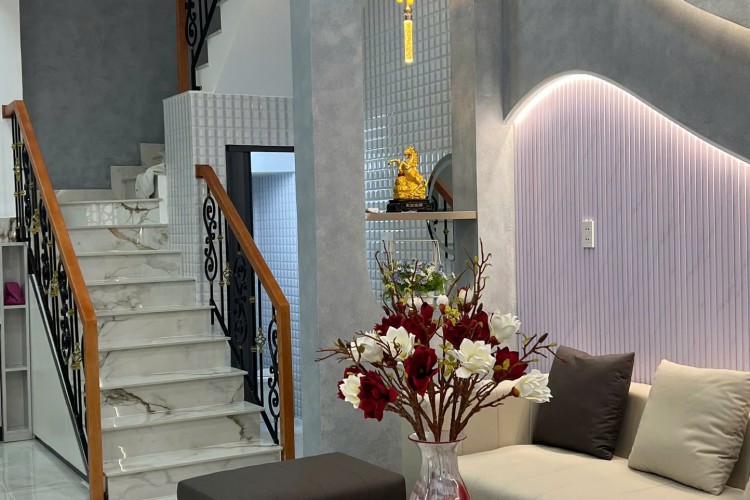 Nội thất: Nhà mới 100%, thiết kế hiện đại, full nội thất cao cấp: tủ bếp, bếp từ, máy hút mùi, sofa, bàn ăn, cửa gỗ, rèm cửa, máy nước nóng năng lượng mặt trời, giường tủ…