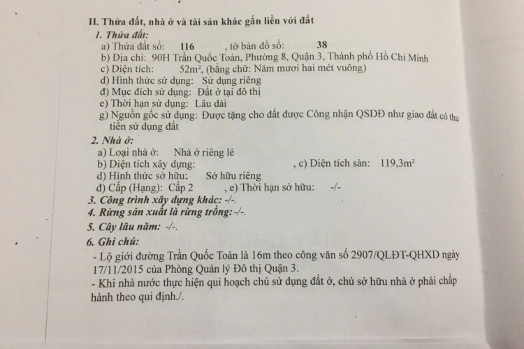 Bán nhà mặt tiền 90H Trần Quốc Toản, P. Võ Thị Sáu, Quận 3