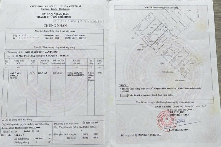 Diện tích: 9.7m × 22.4m – công nhận 204m²