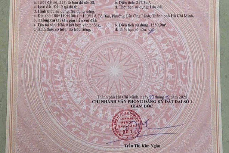Khu vực : Đường Cô Bắc ,Cầu Ông Lãnh , Quận 1, Hồ Chí Minh