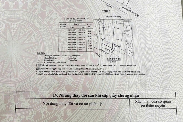 Bán nhà 398 Lê Văn Sỹ, Quận 3