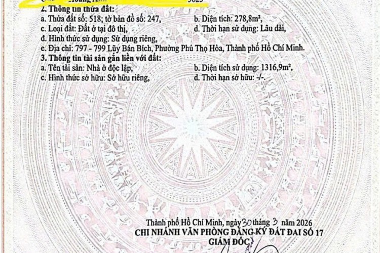 Vị trí: 797–799 Luỹ Bán Bích, Phường Tân Thành, Tân Phú, đoạn đẹp, gần Âu Cơ, tập trung nhiều ngân hàng và tòa nhà.