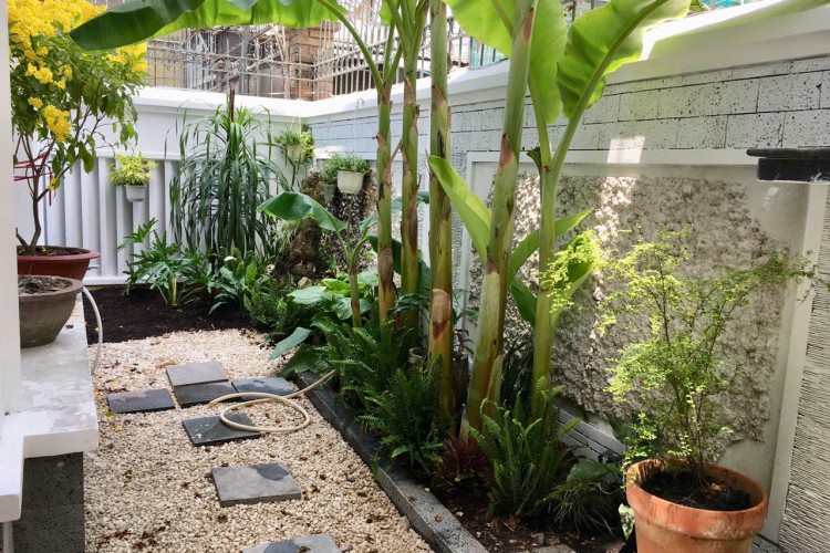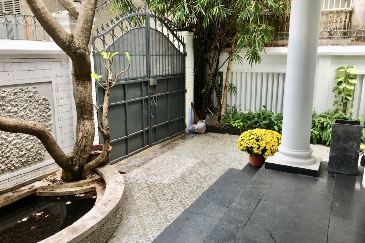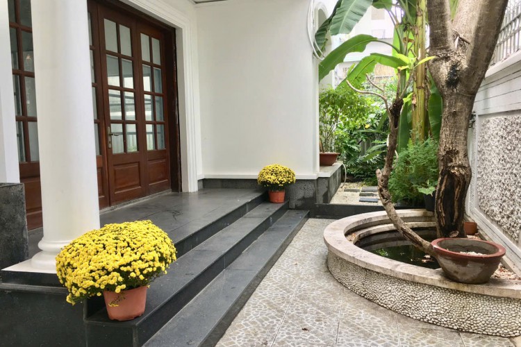 Biệt thự có sân vườn thoáng mát, hồ cá trước nhà, gara ô tô 7 chỗ.