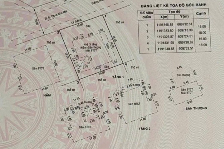 Diện tích: 15 x 18m – Công nhận 270m²