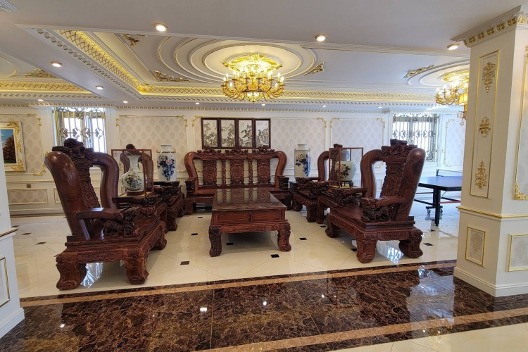 Nội thất: Toàn bộ gỗ Gõ đỏ – Cẩm lai – Gỗ trắc, chế tác thủ công, giá trị cao theo thời gian