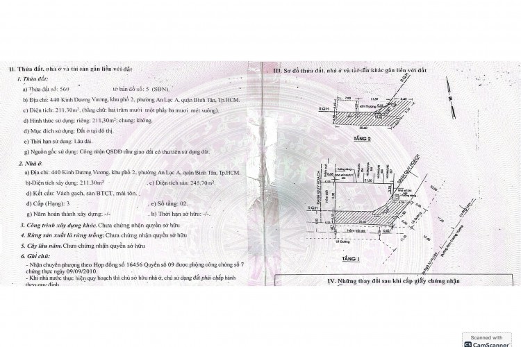 Diện tích công nhận: 246m²