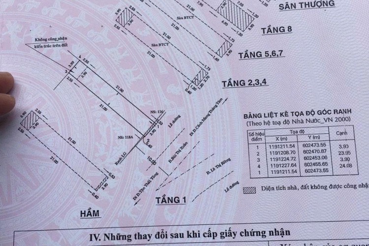 Diện tích: 3,9m x 24m, công nhận 91.85m² (đua ban công 4m x 25.3m).