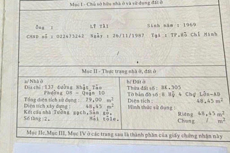 Bán nhà 137 Nhật Tảo, Phường 8 (nay là Phường Diên Hồng), Quận 10