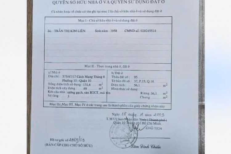 Bán nhà 575/47/17 CMT8, Phường Hòa Hưng, TP.HCM