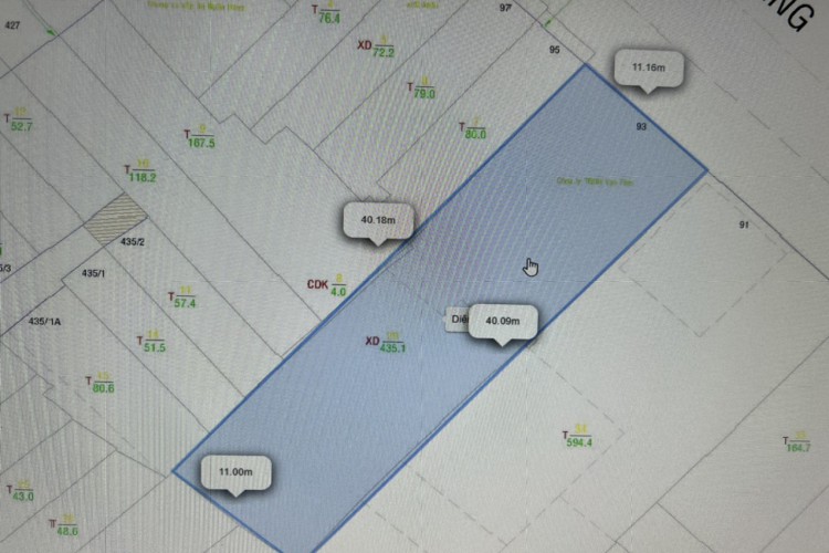 Diện tích: 11m x 40m, công nhận 436,9m².