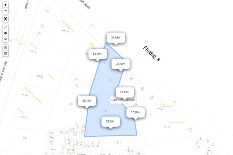 Diện tích: 28m x 100m, nở hậu 50m, công nhận 2.800m² đất ở.